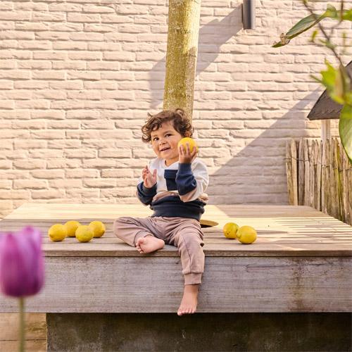 With the Dirkje sweater and sweatpants set in dark blue and brown, your little one is ready for cozy days.