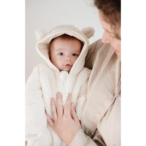 It is made of soft and warm teddy material that envelops your little one in cozy warmth.