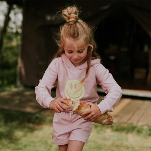 This Koko Noko hoodie for girls, in a soft pink color, is a cheerful and comfortable addition to any wardrobe.