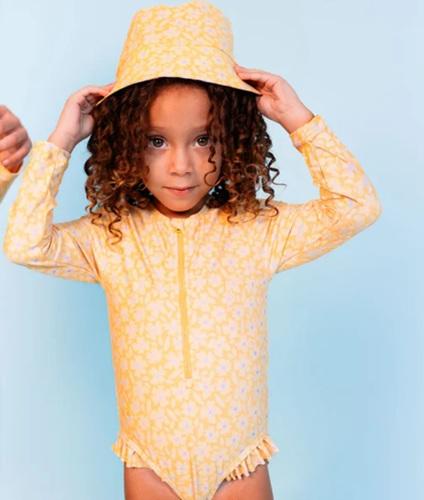 Swimming suit Swim Essentials long sleeves yellow with flowers