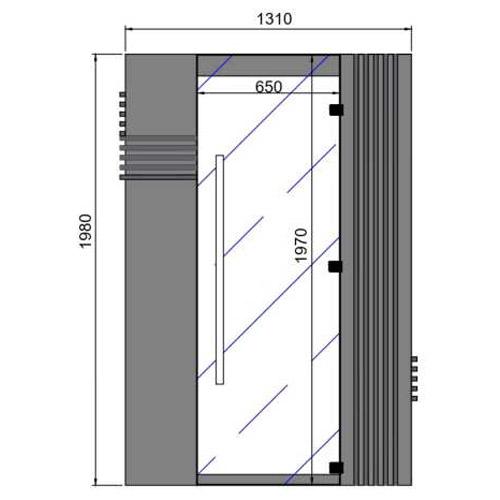 - Bright door made of safety glass 1970 x 650 x 8 mm with lacquered hardware to match the MDF colour.