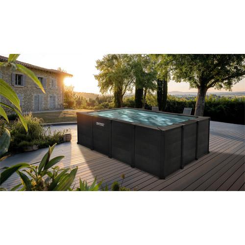 The Intex Graphite Gray panel frame swimming pools add extra cosiness and a warm atmosphere to your garden.