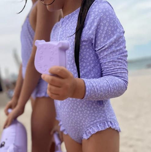 Swimming suit Swim Essentials long sleeves lilac panther print