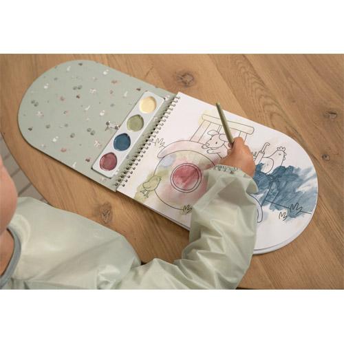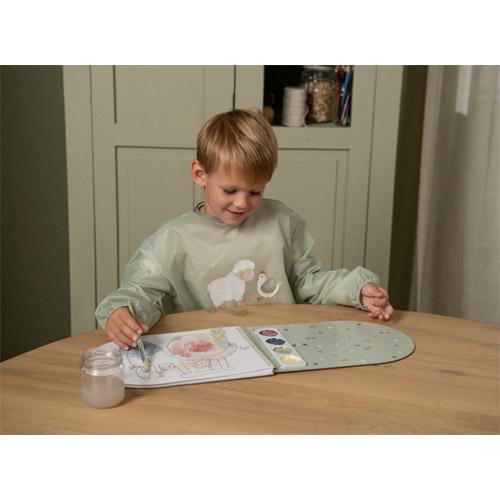 This water-repellent apron covered with the Little Farm farm design will not limit your little artist's creativity.