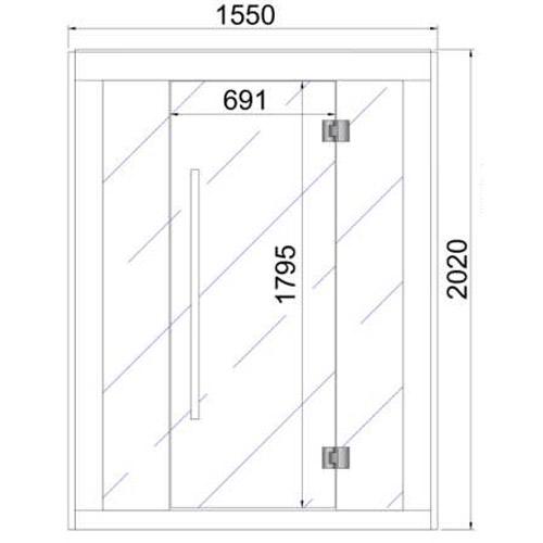 - Façade en verre de sécurité transparent avec porte 1790 mm x 691 mm x 8 mm, y compris le raccrochement des serrures.