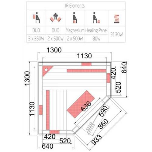 Cabine infrarouge INFRAWAVE 132 cm x 132 cm x 202 cm
