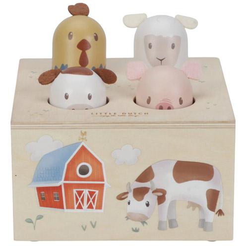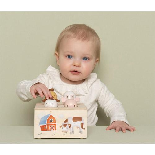 La boîte en bois robuste de ce jouet pop-up interactif est décorée d'illustrations sympathiques de Little Farm, conçues pour stimuler l'imagination de votre tout-petit.