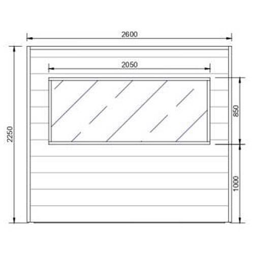 - Double vitrage trempé de 2200 mm x 800 mm en façade.