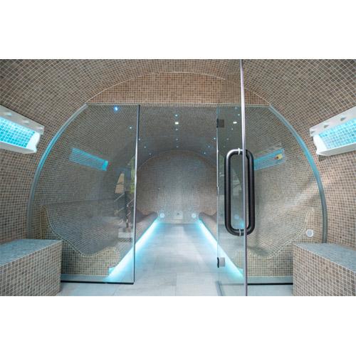 Stoomgenerator Omega Pro 20 18 kW, 380V inclusief aroma pomp, geïnstalleerd in de technische ruimte achter de stoomcabine.