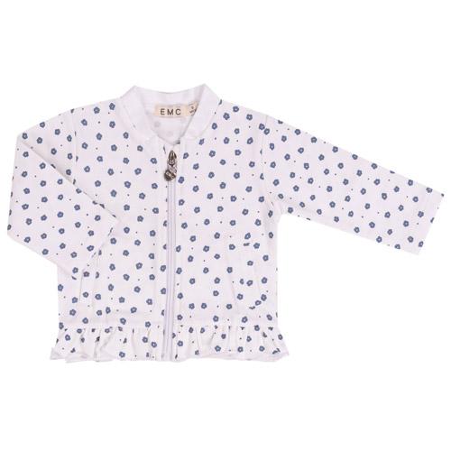 Dit meisjesjasje is gemaakt van zacht, rekbaar katoen en versierd met een subtiele all-over print van blauwe microbloemetjes op een witte achtergrond.