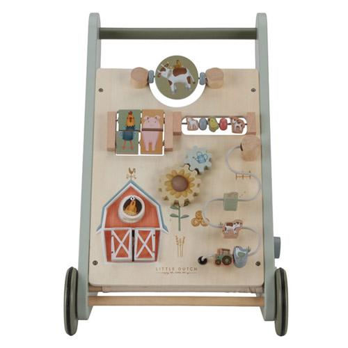Deze houten activiteiten loopwagen biedt verschillende uitdagende activiteiten die de ontwikkeling van jou kindjes motoriek ondersteunen.