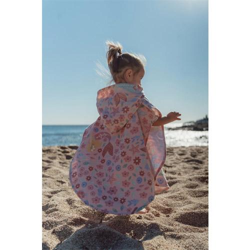 Na een dag vol zon, zee en spetterpret is de roze strandponcho Dreamy Mermaid de perfecte knusse afsluiter.