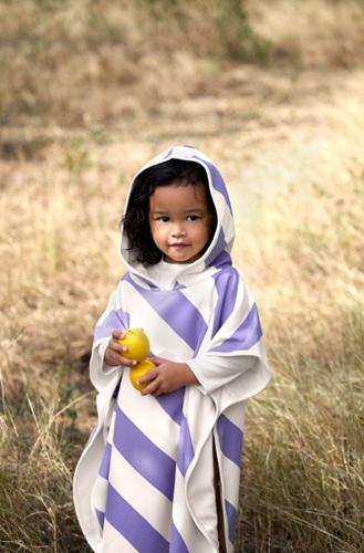 Badponcho LSF Lässig gestreept paars zeezout