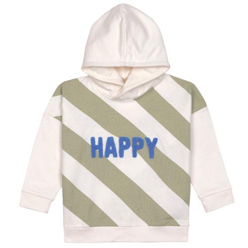 With the stylish 'Happy' hoodie in white and khaki, your child's outfit will be a real eye-catcher .