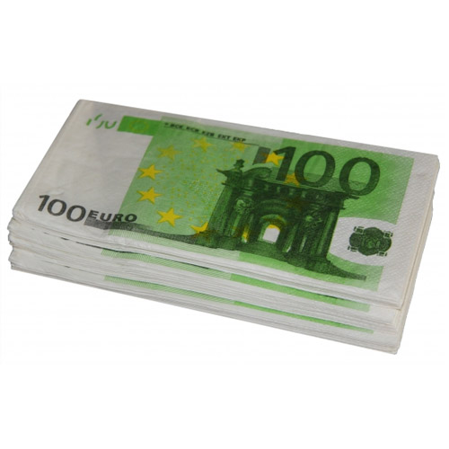 Napkins 100 euro print 20 pieces