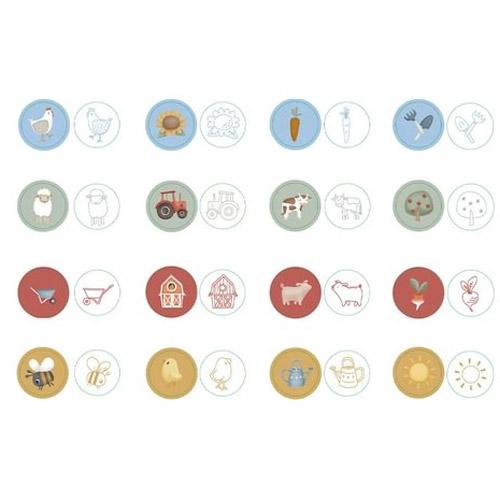 This stamp set contains 16 different stamps, including cute farm animals such as a cow, sheep and chicken, as well as a tractor, farm and sun.