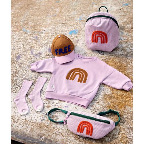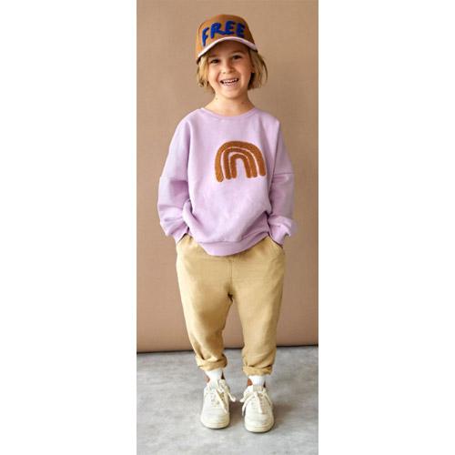 This purple children's cotton sweater in an oversized look with 3D RAINBOW embroidery makes the children's outfit an absolute eye-catcher.