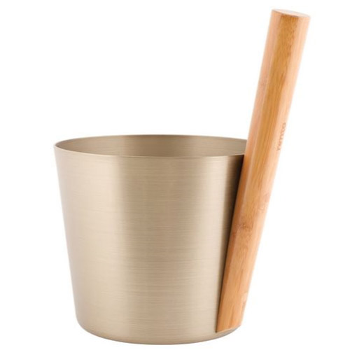 Stijlvolle sauna emmer vervaardigd van geanodiseerde aluminium en warmte-behandeld bamboehout.
