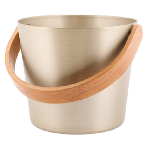 Stijlvolle sauna emmer vervaardigd van geanodiseerde aluminium en warmte-behandeld bamboehout.