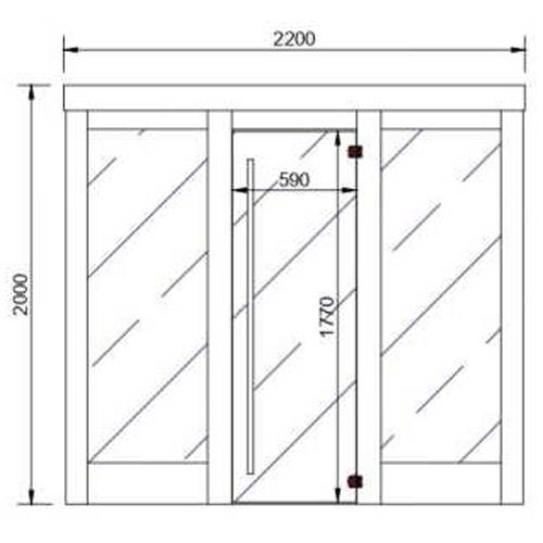 - Door in tinted safety glass 177 mm x 590 mm x 8 mm.