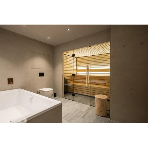 The sauna cabin promotes blood circulation and respiration, and is made of durable wood.