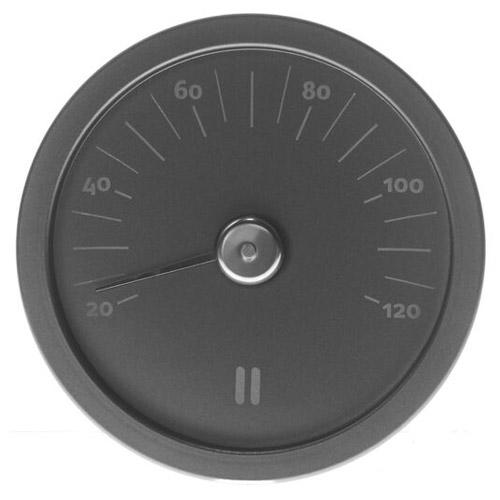 Stijlvolle saunathermometer vervaardigd van gekleurd, geanodiseerde aluminium.