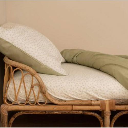 The Little Dutch fitted sheet in the beautiful Blueberry Leaves print brings nature into the nursery.