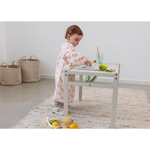 Children's waterproof apron in peach color protects clothing while painting, crafting and more.