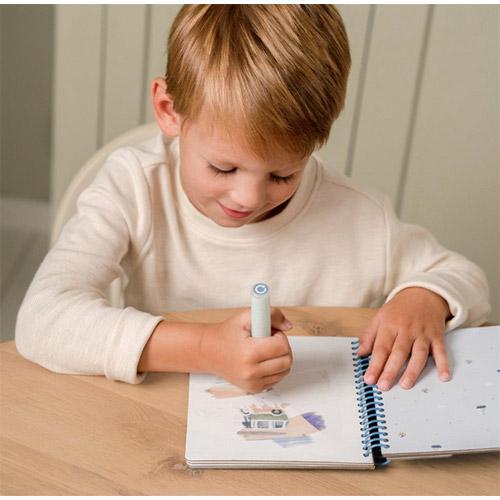 The coloring set consists of five sturdy color cards and a pen that can do magic when filled with water.