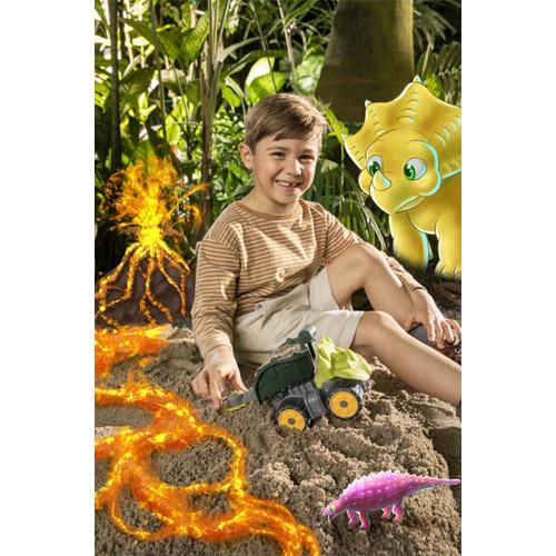 De BIG Power Worker mini triceratops is met zijn krachtige functies het ideale metgezel voor op de speelplaats, tuin of kinderkamer.