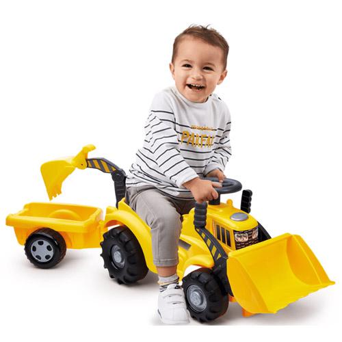 Become a real (land) builder with this Yellow Ecoiffier tractor with trailer.
