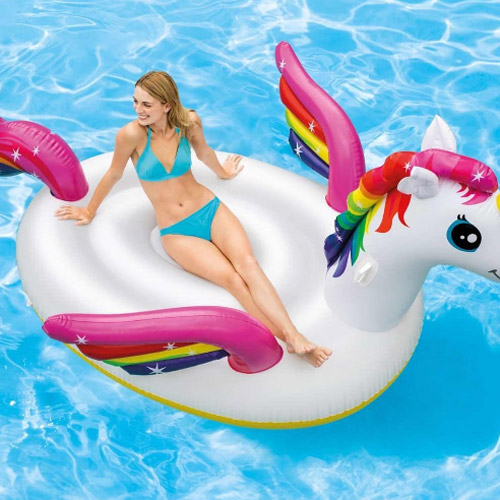 Beautiful unicorn ride-on seat from Intex in different colours and printed with stars, making staying in the pool a real pleasure.