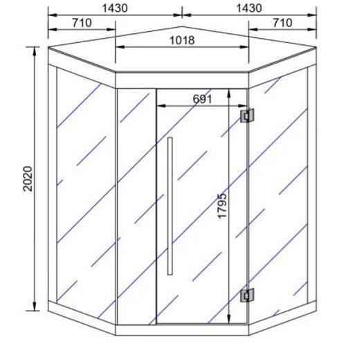 - Façade en verre de sécurité transparent avec porte 1790 mm x 691 mm x 8 mm, y compris le raccrochement des serrures.