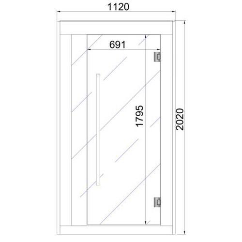 - Façade en verre de sécurité transparent avec porte 1790 mm x 691 mm x 8 mm, y compris le raccrochement des serrures.