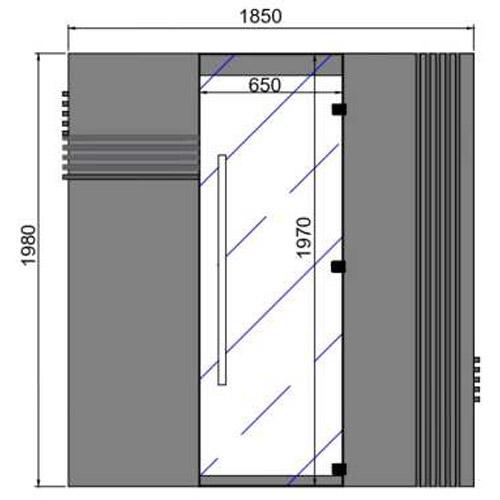 - Porte transparente en verre de sécurité 1970 mm x 650 mm x 8 mm avec charnières laquée assortie à la couleur du MDF.