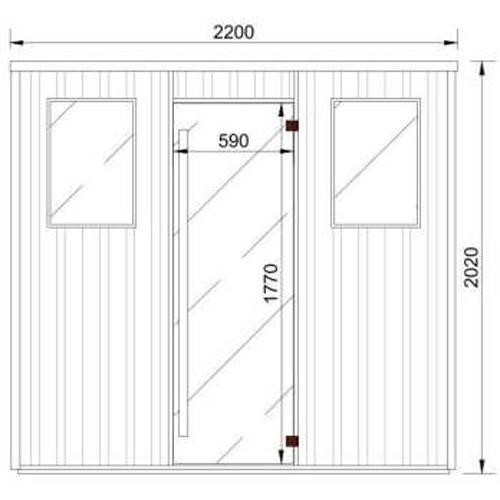- Porte en verre de sécurité teinté 1770 mm x 590 mm x 8 mm avec charnières brunes et poignée en cèdre, 2 fenêtres en verre de sécurité teinté.