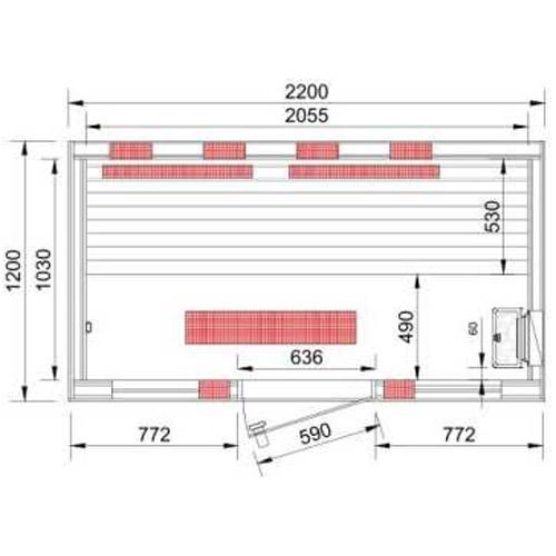 Combi cabine infrarouge / sauna CHALEUR 220 cm x 120 cm x 202 cm
