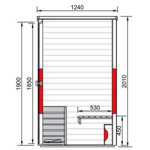- Four de sauna 3 kW avec commande intégrée.