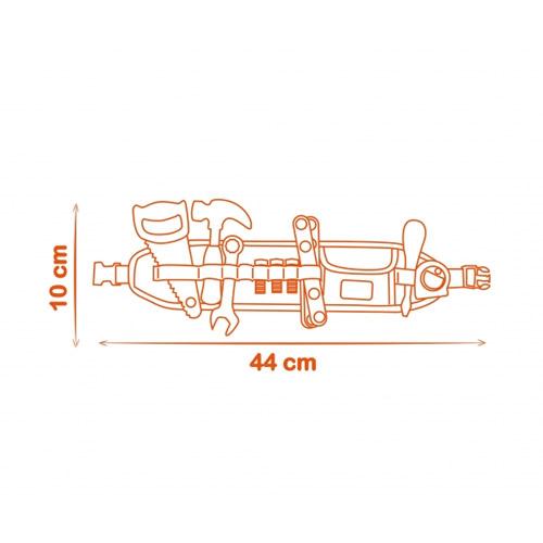 Je hebt alles bij je om te knutselen: 1 zaag, 1 schroevendraaier, 1 hamer, 1 combinatiesleutel, 1 meetlint, 3 schroeven, 3 linialen en 3 moeren.