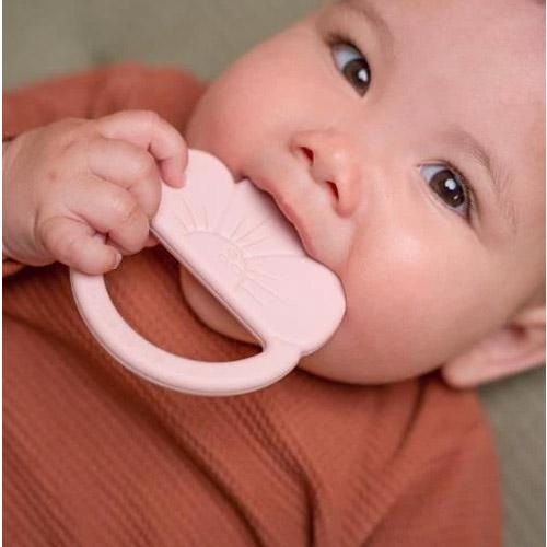 L'anneau de dentition est conçu pour être facile à saisir avec les mains de bébé.