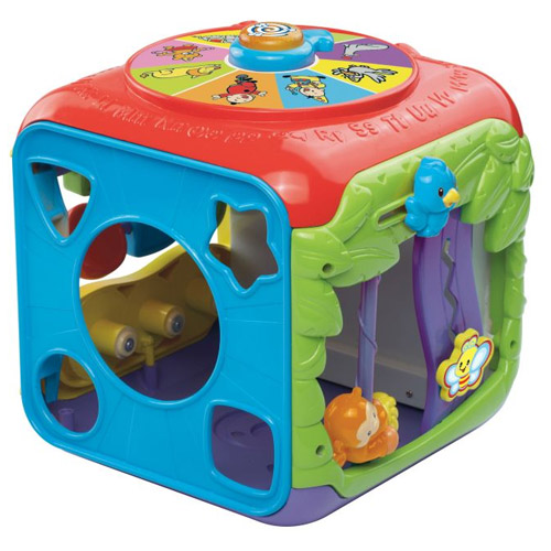 - Avec 4 formes, un livret interactif et des boutons clignotants.