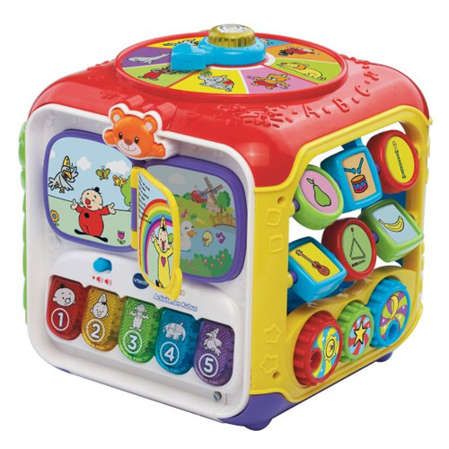 Ce cube d'activité stimule le développement de la motricité fine et de la coordination oeil-main de manière ludique et variée.