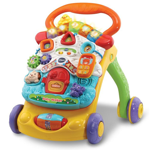 Le trotteur 2-en-1 de Vtech permet aux enfants de faire leurs premiers pas dans le monde des animaux, des couleurs, des formes, de la musique et bien plus encore.