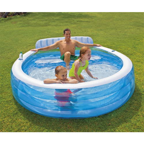 Cette piscine salon de famille est bleu et transparent de Intex est prévu d'un support dorsal, deux porte-gobelets et un siège confortable, pour un plaisir aquatique en famille.