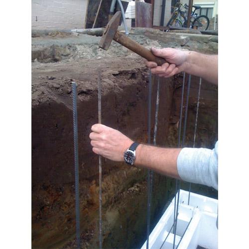 Dans les blocs creux, on place une armature constituée de barres de fer appliquées horizontalement et verticalement (ferraillage).