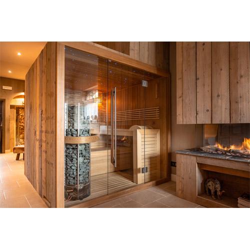- Bancs, dossiers, grilles de protection du four et plancher de marche en bois d'ayous.
