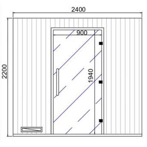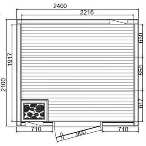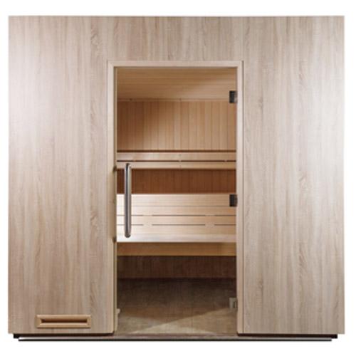 - Finition des plinthes de 60 mm et des panneaux sous les parois du sauna en Trespa de 10 mm.