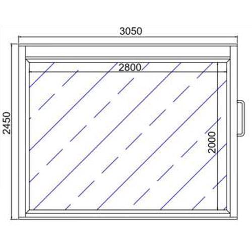 - Paroi latérale avec porte vitrée, symétrique par rapport à a fenêtre et poignée en D.