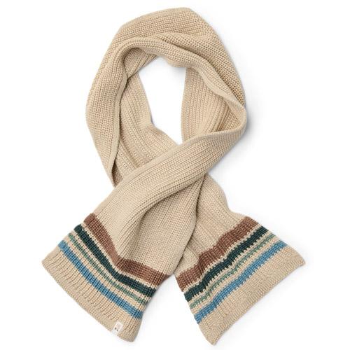 L'écharpe a une touche ludique grâce aux rayures colorées à son extrémité.