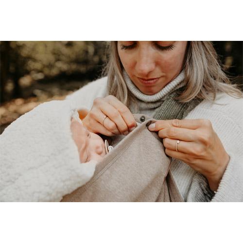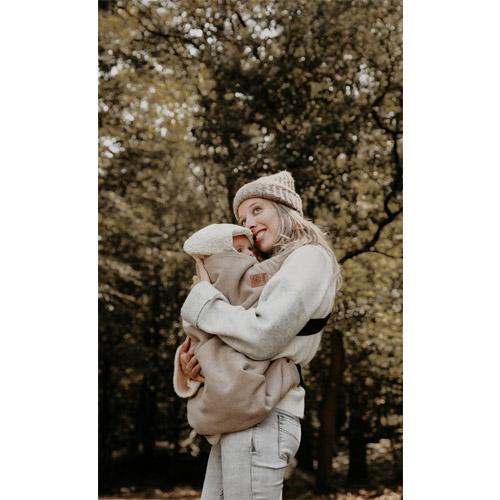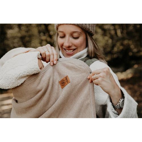 Fixez-la aux sangles de votre porte-bébé et vous obtenez une couverture de portage agréable pour protéger votre bébé du vent et du froid.